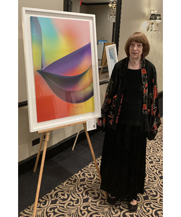 The Houston Center for Photography’s annual fundraising Gala Dinner and Auction was held at the Hotel Zaza on the evening of February 15, 2024. Here I am posing beside my donated photograph “Emissary” (from the Nota Bene series), which was sold to the highest bidder during the silent phase of the auction. Photo courtesy of Horten Pomales.
